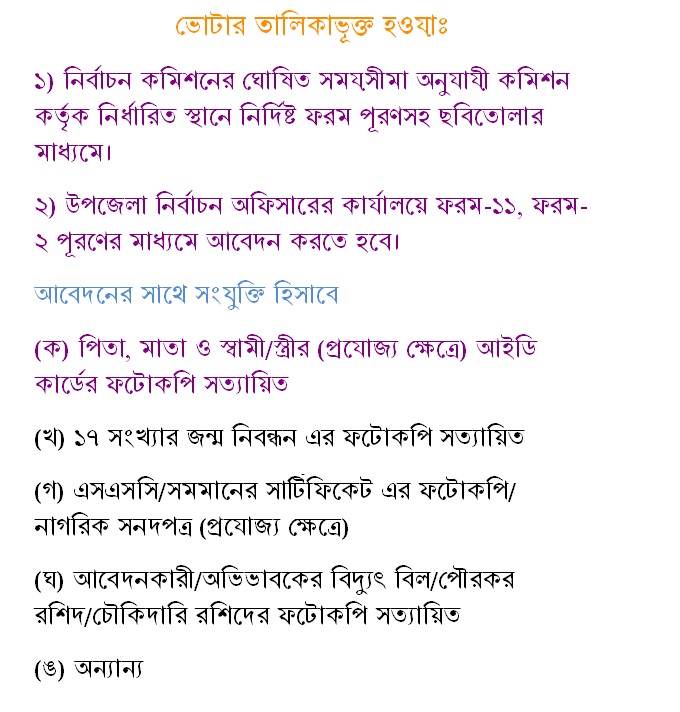 | ৭ | ভোটার তালিকাভূক্ত হওয়া | দেখুন |
