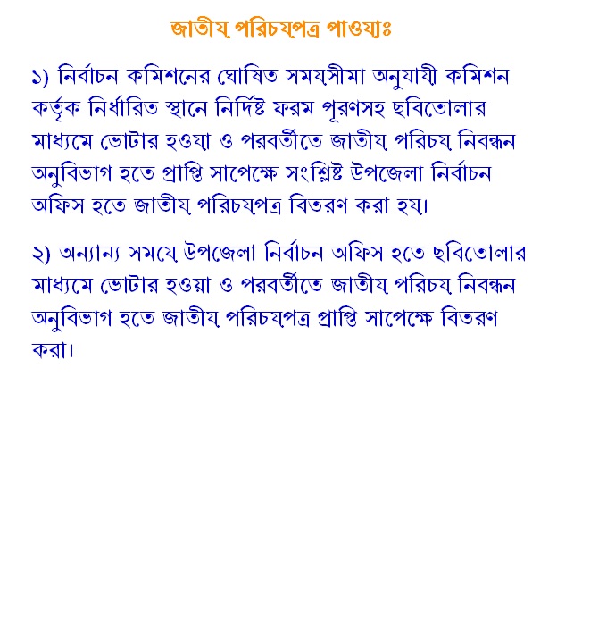| ৬ | জাতীয় পরিচয়পত্র পাওয়া | দেখুন | |