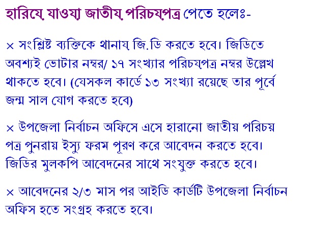 | ৫ | হারিয়ে যাওয়া জাতীয় পরিচয়পত্র | দেখুন | |
