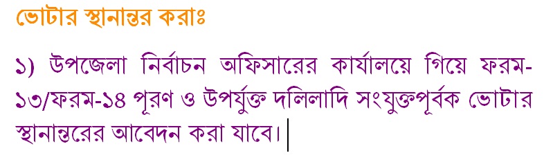 | ৩ | ভোটার স্থানান্তর করা | দেখুন | |